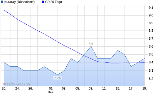 Mit dem Anstieg auf 8,50 EUR hat die Kuraray-Aktie am 19.12.2025 die 20-Tage-Linie nach oben gekreuzt.Die Kuraray-Aktie befindet sich seit dem 13.02.2025 im langfristigen Abwärtstrend und hat ...weiterlesen