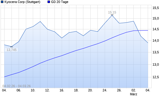 Mit dem Rücksetzer auf 13,63 EUR hat die Kyocera-Aktie am 03.03.2026 die 20-Tage-Linie nach unten gekreuzt.Die Kyocera-Aktie befindet sich seit dem 31.07.2025 im ...weiterlesen