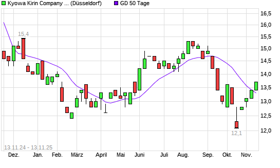 Mit dem Anstieg auf 13,60 EUR hat die Kyowa Hakko Kirin-Aktie am 12.11.2025 die 50-Tage-Linie nach oben gekreuzt.Die Kyowa Hakko Kirin-Aktie befindet sich seit dem 16.09.2025 im langfristigen ...weiterlesen
