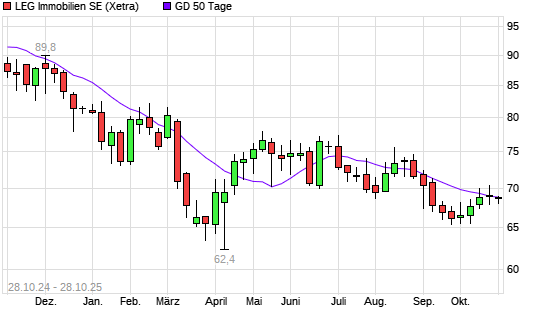 Mit dem Rücksetzer auf 68,35 EUR hat die LEG Immobilien-Aktie am 27.10.2025 die 50-Tage-Linie nach unten gekreuzt.Die LEG Immobilien-Aktie befindet sich seit dem 16.12.2024 im langfristigen ...weiterlesen