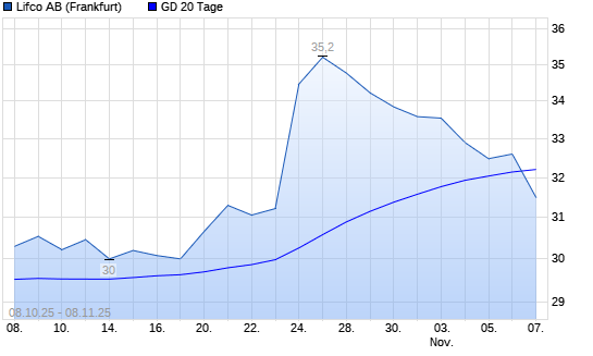 Mit dem Rücksetzer auf 31,82 EUR hat die LIFCO AB B-Aktie am 07.11.2025 die 20-Tage-Linie nach unten gekreuzt.Die LIFCO AB B-Aktie befindet sich seit dem 05.11.2025 im langfristigen Abwärtstrend ...weiterlesen