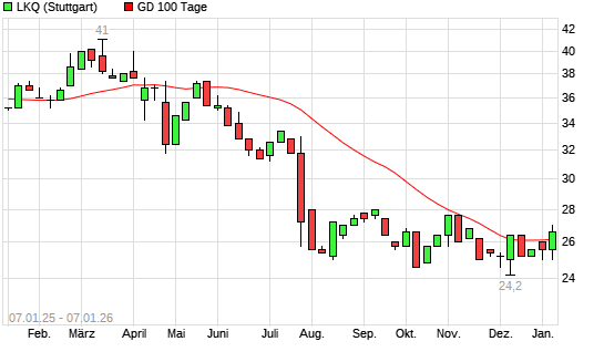 Mit dem Anstieg auf 26,60 EUR hat die LKQ-Aktie am 06.01.2026 die 100-Tage-Linie nach oben gekreuzt.Die LKQ-Aktie befindet sich seit dem 21.05.2025 im langfristigen Abwärtstrend und hat in diesem ...weiterlesen