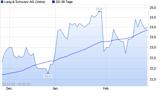 Mit dem Rücksetzer auf 23,60 EUR hat die Lang & Schwarz-Aktie am 25.02.2026 die 38-Tage-Linie nach unten gekreuzt.Die Lang & Schwarz-Aktie befindet sich seit dem 23.12.2025 ...weiterlesen