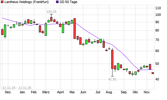 Mit dem Rücksetzer auf 44,31 EUR hat die Lantheus Holdings-Aktie am 10.11.2025 die 50-Tage-Linie nach unten gekreuzt.Die Lantheus Holdings-Aktie befindet sich seit dem 07.05.2025 im langfristigen ...weiterlesen