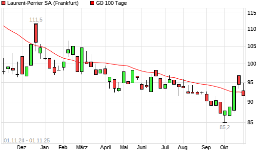 Mit dem Rücksetzer auf 91,60 EUR hat die Laurent-Perrrier-Aktie am 31.10.2025 die 100-Tage-Linie nach unten gekreuzt.Die Laurent-Perrrier-Aktie befindet sich seit dem 22.10.2025 im langfristigen ...weiterlesen