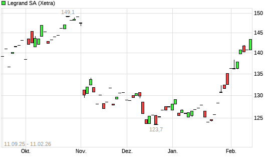 Mit dem Anstieg auf 154,25 EUR hat die Legrand-Aktie (ISIN FR0010307819) am 12.02.2026 ein neues All-Time-High erreicht und damit den Kurs vom 03.11.2025 eingestellt.Die Legrand-Aktie befindet ...weiterlesen