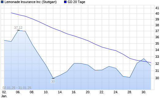 Mit dem Anstieg auf 32,49 EUR hat die Lemonade-Aktie am 30.01.2025 die 20-Tage-Linie nach oben gekreuzt.Die Lemonade-Aktie befindet sich seit dem 14.10.2024 im langfristigen Aufwärtstrend und ...weiterlesen