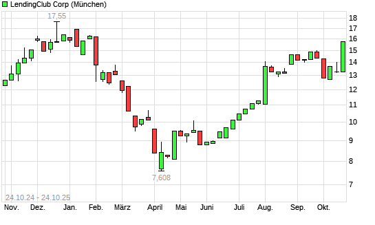 Mit dem Anstieg auf 15,44 EUR hat die LendingClub Corp-Aktie (ISIN US52603A2087) am 23.10.2025 ein neues 6-Monats-Hoch erreicht und damit den Kurs vom 19.09.2025 eingestellt.Die LendingClub ...weiterlesen