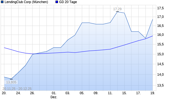 Mit dem Anstieg auf 16,64 EUR hat die LendingClub Corp-Aktie am 19.12.2025 die 20-Tage-Linie nach oben gekreuzt.Die LendingClub Corp-Aktie befindet sich seit dem 30.07.2025 im langfristigen ...weiterlesen
