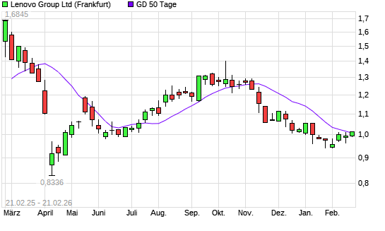 Mit dem Anstieg auf 1,02 EUR hat die Lenovo Group-Aktie am 20.02.2026 die 50-Tage-Linie nach oben gekreuzt.Die Lenovo Group-Aktie befindet sich seit dem 14.11.2025 im ...weiterlesen