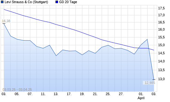 Mit dem Anstieg auf 15,09 EUR hat die Levi Strauss & Co-Aktie am 02.04.2025 die 20-Tage-Linie nach oben gekreuzt.Die Levi Strauss & Co-Aktie befindet sich seit dem 26.02.2025 ...weiterlesen
