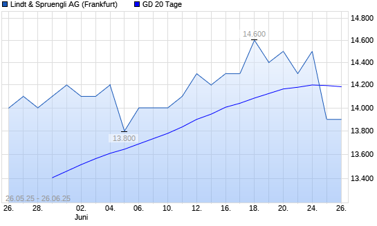 Mit dem Rücksetzer auf 13.900,00 EUR hat die Lindt & Sprüngli Partizipationsschein-Aktie am 25.06.2025 die 20-Tage-Linie nach unten gekreuzt.Die Lindt & Sprüngli Partizipationsschein-Aktie ...weiterlesen