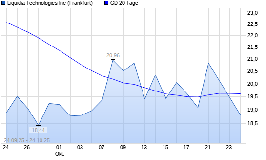 Mit dem Rücksetzer auf 19,44 EUR hat die Liquidia Technologies-Aktie am 23.10.2025 die 20-Tage-Linie nach unten gekreuzt.Die Liquidia Technologies-Aktie befindet sich seit dem 18.07.2025 ...weiterlesen