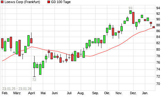 Mit dem Anstieg auf 87,50 EUR hat die Loews-Aktie am 22.01.2026 die 100-Tage-Linie nach oben gekreuzt.Die Loews-Aktie befindet sich seit dem 05.08.2025 im langfristigen Aufwärtstrend und hat ...weiterlesen