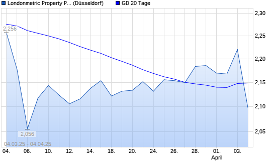 Mit dem Rücksetzer auf 2,13 EUR hat die Londonmetric Property-Aktie am 03.04.2025 die 20-Tage-Linie nach unten gekreuzt.Die Londonmetric Property-Aktie befindet sich seit dem 05.03.2025 ...weiterlesen