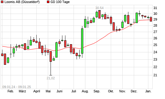 Mit dem Rücksetzer auf 28,96 EUR hat die Loomis AB SERIES B-Aktie am 08.01.2025 die 100-Tage-Linie nach unten gekreuzt.Die Loomis AB SERIES B-Aktie befindet sich seit dem 25.07.2024 im ...weiterlesen