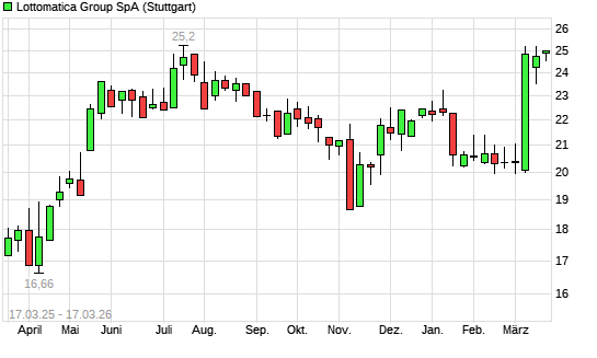 Mit dem Anstieg auf 25,64 EUR hat die Lottomatica-Aktie (ISIN IT0005541336) am 16.03.2026 ein neues 6-Monats-Hoch erreicht und damit den Kurs vom 11.03.2026 ...weiterlesen
