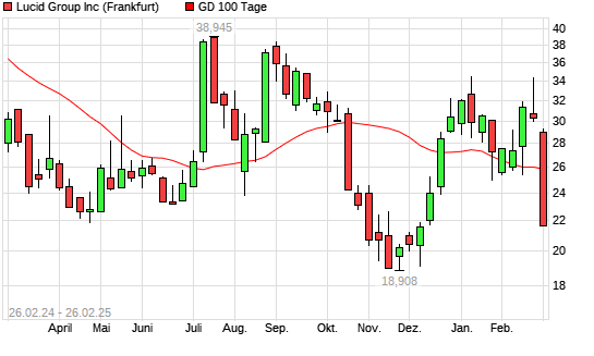 Mit dem Rücksetzer auf 2,53 EUR hat die Lucid Motors-Aktie am 25.02.2025 die 100-Tage-Linie nach unten gekreuzt.Die Lucid Motors-Aktie befindet sich seit dem 24.02.2025 im langfristigen ...weiterlesen