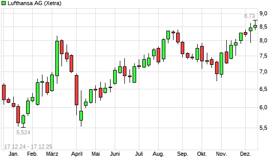 Mit dem Anstieg auf 8,58 EUR hat die Lufthansa-Aktie (ISIN DE0008232125) am 16.12.2025 ein neues 12-Monats-Hoch erreicht und damit den Kurs vom 12.12.2025 eingestellt.Die ...weiterlesen