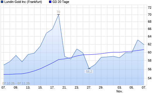 Mit dem Anstieg auf 63,15 EUR hat die Lundin Gold-Aktie am 06.11.2025 die 20-Tage-Linie nach oben gekreuzt.Die Lundin Gold-Aktie befindet sich seit dem 04.03.2024 im langfristigen Aufwärtstrend ...weiterlesen