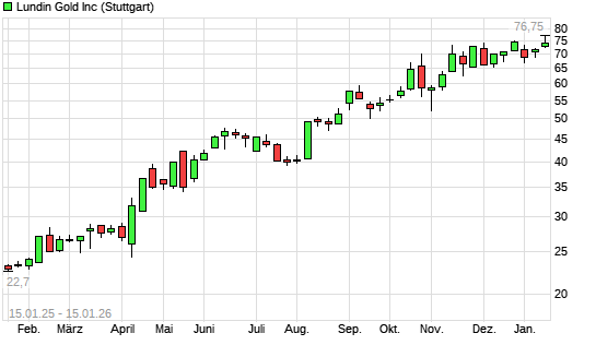 Mit dem Anstieg auf 76,85 EUR hat die Lundin Gold-Aktie (ISIN CA5503711080) am 14.01.2026 ein neues All-Time-High erreicht und damit den Kurs vom 23.12.2025 eingestellt.Die Lundin Gold-Aktie ...weiterlesen