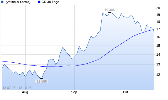 Mit dem Rücksetzer auf 16,66 EUR hat die Lyft-Aktie am 17.10.2025 die 38-Tage-Linie nach unten gekreuzt.Die Lyft-Aktie befindet sich seit dem 15.08.2025 im langfristigen Aufwärtstrend und ...weiterlesen