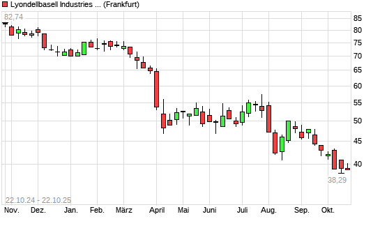 Mit dem Rücksetzer auf 38,90 EUR hat die Lyondellbasell Industries-Aktie (ISIN NL0009434992) am 21.10.2025 ein neues 5-Jahres-Tief erreicht und damit den Kurs vom 10.10.2025 eingestellt.Die ...weiterlesen