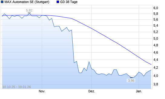 Mit dem Anstieg auf 4,14 EUR hat die MAX Automation-Aktie am 09.01.2026 die 38-Tage-Linie nach oben gekreuzt.Die MAX Automation-Aktie befindet sich seit dem 05.11.2025 im langfristigen Abwärtstrend ...weiterlesen