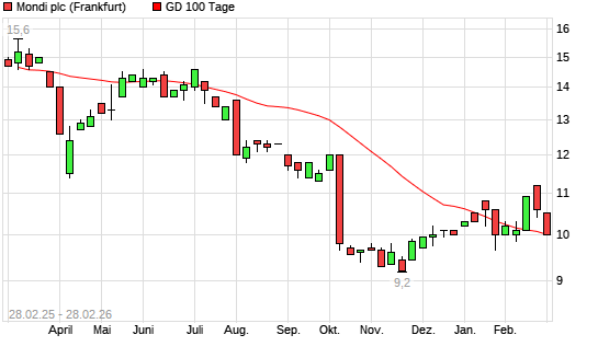 Mit dem Rücksetzer auf 10,00 EUR hat die MONDI-Aktie am 27.02.2026 die 100-Tage-Linie nach unten gekreuzt.Die MONDI-Aktie befindet sich seit dem 07.07.2025 im ...weiterlesen