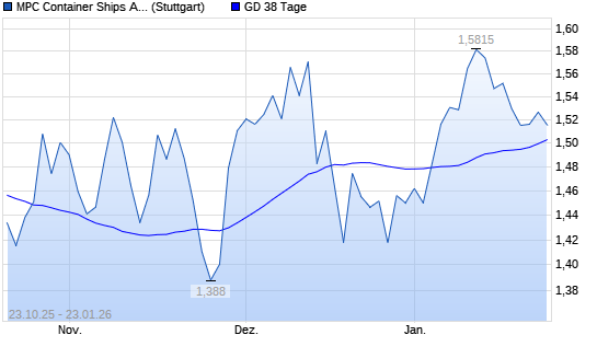 Mit dem Anstieg auf 1,51 EUR hat die MPC Container Ships-Aktie am 22.01.2026 die 38-Tage-Linie nach oben gekreuzt.Die MPC Container Ships-Aktie befindet sich seit dem 06.01.2026 ...weiterlesen