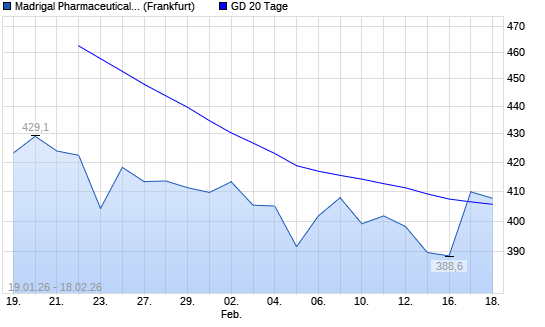 Mit dem Anstieg auf 409,80 EUR hat die Madrigal Pharmaceuticals-Aktie am 17.02.2026 die 20-Tage-Linie nach oben gekreuzt.Die Madrigal Pharmaceuticals-Aktie befindet sich seit ...weiterlesen