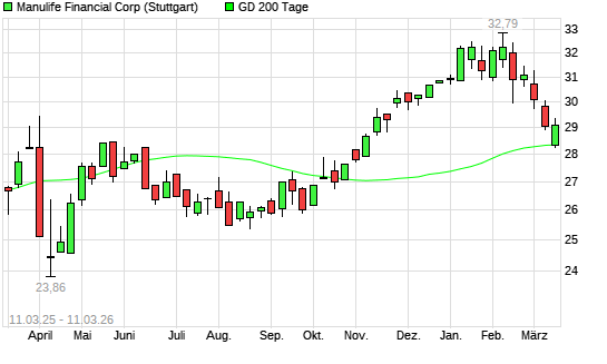 Mit dem Anstieg auf 28,84 EUR hat die Manulife Financial-Aktie am 10.03.2026 die 200-Tage-Linie nach oben gekreuzt.Die Manulife Financial-Aktie befand sich seit dem 09.03.2026 ...weiterlesen