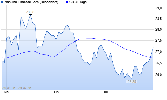 Mit dem Anstieg auf 26,79 EUR hat die Manulife Financial-Aktie am 28.07.2025 die 38-Tage-Linie nach oben gekreuzt.Die Manulife Financial-Aktie befindet sich seit dem 12.06.2025 im langfristigen ...weiterlesen