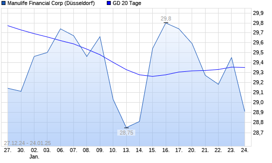 Mit dem Rücksetzer auf 28,95 EUR hat die Manulife Financial-Aktie am 23.01.2025 die 20-Tage-Linie nach unten gekreuzt.Die Manulife Financial-Aktie befindet sich seit dem 06.08.2024 im langfristigen ...weiterlesen
