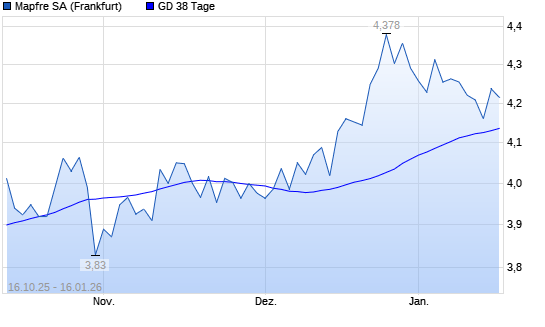 Mit dem Anstieg auf 4,24 EUR hat die Mapfre-Aktie am 15.01.2026 die 38-Tage-Linie nach oben gekreuzt.Die Mapfre-Aktie befindet sich seit dem 09.08.2024 im langfristigen Aufwärtstrend und hat ...weiterlesen