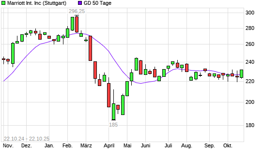 Mit dem Anstieg auf 228,10 EUR hat die Marriott International-Aktie am 21.10.2025 die 50-Tage-Linie nach oben gekreuzt.Die Marriott International-Aktie befindet sich seit dem 21.05.2025 im langfristigen ...weiterlesen
