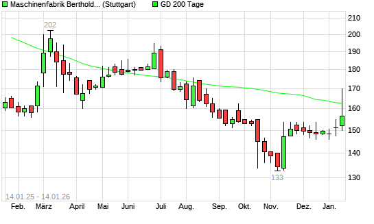 Mit dem Anstieg auf 164,50 EUR hat die Maschinenfabrik Berthold Hermle Vz-Aktie am 13.01.2026 die 200-Tage-Linie nach oben gekreuzt.Die Maschinenfabrik Berthold Hermle Vz-Aktie befand ...weiterlesen