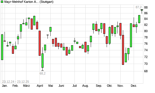 Mit dem Anstieg auf 86,90 EUR hat die Mayr-Melnhof-Aktie (ISIN AT0000938204) am 22.12.2025 ein neues 12-Monats-Hoch erreicht und damit den Kurs vom 19.12.2025 eingestellt.Die Mayr-Melnhof-Aktie ...weiterlesen