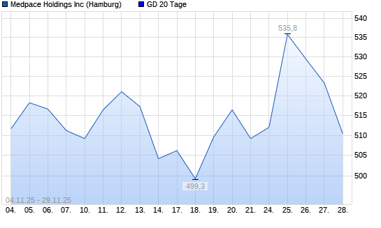 Mit dem Rücksetzer auf 510,40 EUR hat die Medpace Holdings-Aktie am 28.11.2025 die 20-Tage-Linie nach unten gekreuzt.Die Medpace Holdings-Aktie befindet sich seit dem 22.07.2025 im langfristigen ...weiterlesen