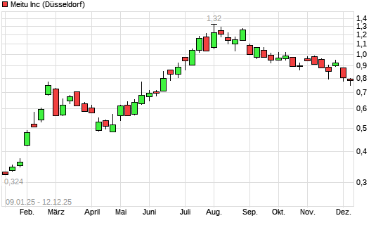 Mit dem Rücksetzer auf 0,75 EUR hat die Meitu-Aktie (ISIN KYG5966D1051) am 11.12.2025 ein neues 6-Monats-Tief erreicht und damit den Kurs vom 10.12.2025 eingestellt.Die ...weiterlesen