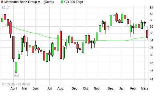 Mit dem Rücksetzer auf 54,84 EUR hat die Mercedes-Benz Group (ex Daimler)-Aktie am 06.03.2026 die 200-Tage-Linie nach unten gekreuzt.Die Mercedes-Benz Group (ex Daimler)-Aktie ...weiterlesen