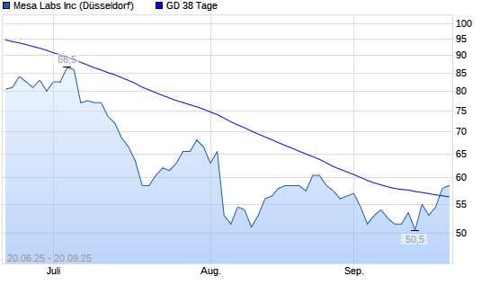Mit dem Anstieg auf 58,00 EUR hat die Mesa Laboratories-Aktie am 19.09.2025 die 38-Tage-Linie nach oben gekreuzt.Die Mesa Laboratories-Aktie befindet sich seit dem 27.03.2025 im langfristigen ...weiterlesen