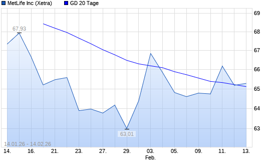 Mit dem Rücksetzer auf 64,62 EUR hat die MetLife-Aktie am 13.02.2026 die 20-Tage-Linie nach unten gekreuzt.Die MetLife-Aktie befindet sich seit dem 12.01.2026 im langfristigen Abwärtstrend ...weiterlesen