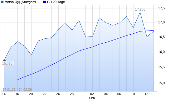 Mit dem Rücksetzer auf 16,49 EUR hat die Metso Outotec-Aktie am 13.02.2026 die 20-Tage-Linie nach unten gekreuzt.Die Metso Outotec-Aktie befindet sich seit dem 25.04.2025 im langfristigen ...weiterlesen