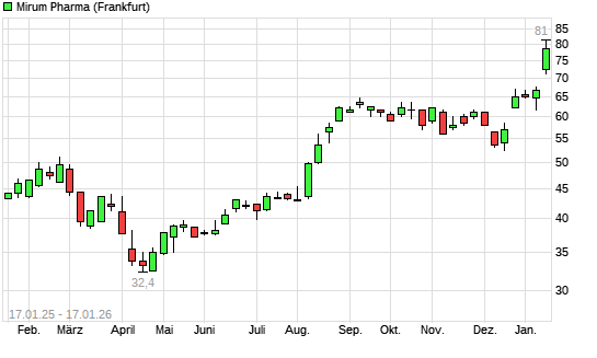 Mit dem Anstieg auf 78,50 EUR hat die Mirum Pharmaceuticals-Aktie (ISIN US6047491013) am 16.01.2026 ein neues All-Time-High erreicht und damit den Kurs vom 15.01.2026 eingestellt.Die Mirum Pharmaceuticals-Aktie ...weiterlesen