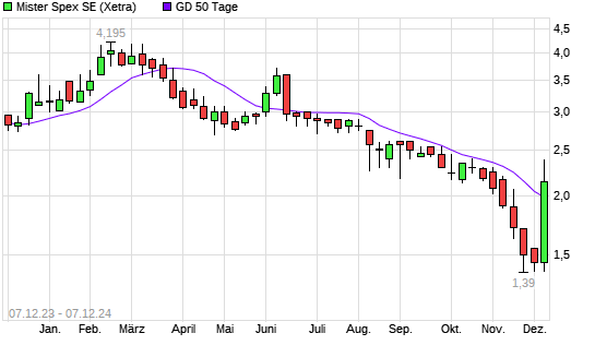Mit dem Anstieg auf 2,22 EUR hat die Mister Spex-Aktie am 06.12.2024 die 50-Tage-Linie nach oben gekreuzt.Die Mister Spex-Aktie befindet sich seit dem 11.06.2024 im langfristigen Abwärtstrend ...weiterlesen