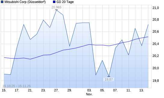 Mit dem Rücksetzer auf 20,60 EUR hat die Mitsubishi-Aktie am 14.11.2025 die 20-Tage-Linie nach unten gekreuzt.Die Mitsubishi-Aktie befindet sich seit dem 17.07.2025 im langfristigen Aufwärtstrend ...weiterlesen