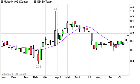 Mit dem Rücksetzer auf 0,50 EUR hat die Mobotix-Aktie am 24.10.2025 die 50-Tage-Linie nach unten gekreuzt.Die Mobotix-Aktie befindet sich seit dem 21.10.2025 im langfristigen Abwärtstrend ...weiterlesen