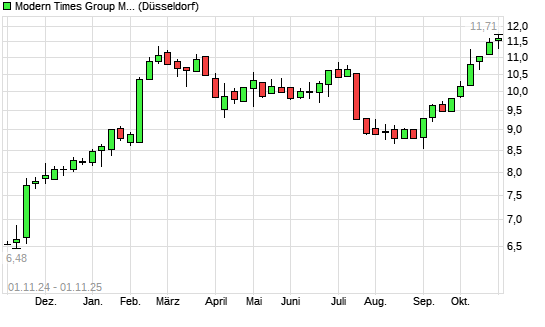 Mit dem Anstieg auf 11,65 EUR hat die Modern Times Group B-Aktie (ISIN SE0018012494) am 31.10.2025 ein neues 10-Jahres-Hoch erreicht und damit den Kurs vom 24.10.2025 ...weiterlesen