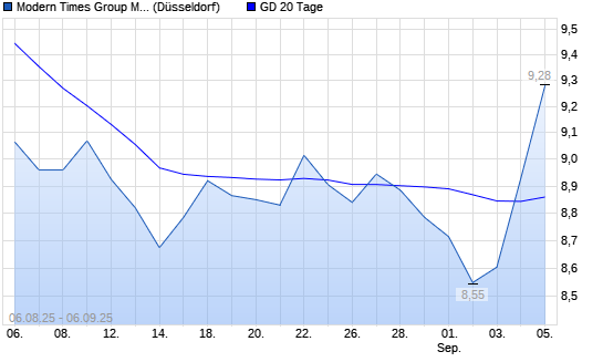 Mit dem Anstieg auf 8,98 EUR hat die Modern Times Group B-Aktie am 05.09.2025 die 20-Tage-Linie nach oben gekreuzt.Die Modern Times Group B-Aktie befindet sich seit dem 21.07.2025 ...weiterlesen